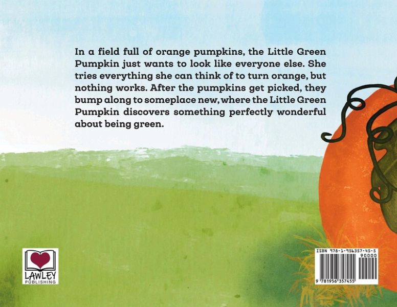 In a field full of orange pumpkins, the Little Green Pumpkin just wants to look like everyone else. She tries everything she can think of to turn orange, but nothing works. After the pumpkins get picked, they bump along to someplace new where the Little Green Pumpkin discovers something perfectly wonderful about being green.