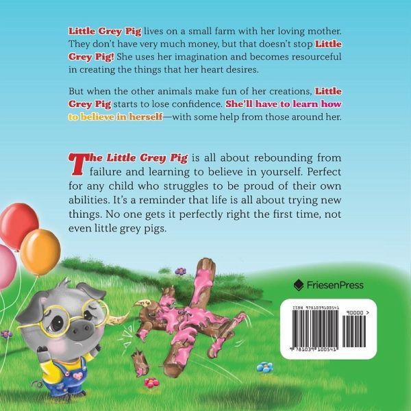 Little Grey Pig lives on a small farm with her loving mother. They don't have very much money, but that doesn't stop Little Grey Pig! She uses her imagination and becomes resourceful in creating the things that her heart desires. But when the other animals make fun of her creations, Little Grey Pig starts to lose confidence. She'll have to learn how to believe in herself-with some help from those around her. The Little Grey Pig is all about rebounding from failure and learning to believe in yourself. Perfect for any child who struggles to be proud of their own abilities. It's a reminder that life is all about trying new things. No one gets it perfectly right the first time, not even little grey pigs.