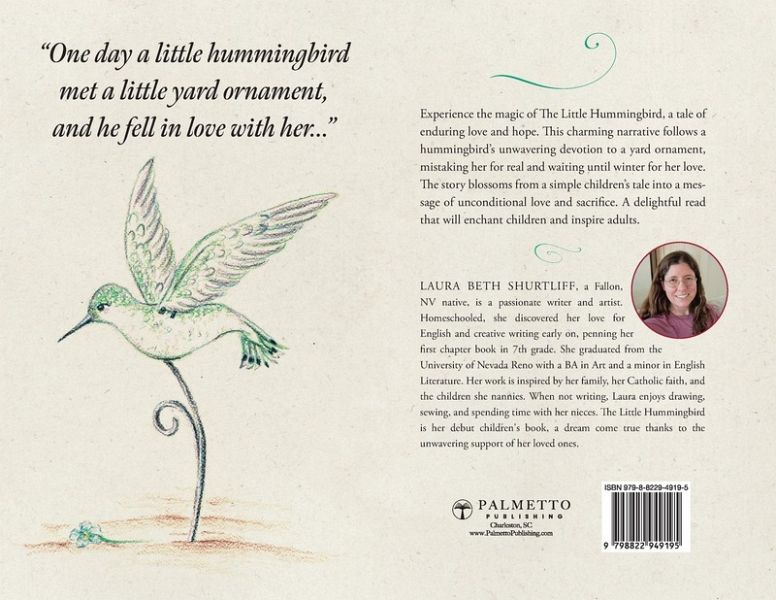 Discover a heartwarming tale of a brave bird's unwavering love for a charming yard ornament. A journey of hope, sacrifice, and the magic of love that knows no bounds. A story that charms kids and inspires adults. The Little Hummingbird is a delightful, romantic tale that unfolds in the heart of a beautiful rose garden. Our feathered hero, a charming hummingbird, encounters a captivating yard ornament and is instantly smitten. Believing her to be real, he waits patiently through the first signs of winter, hoping to win her heart. This enchanting narrative concludes with a fairytale-like ending that will touch readers of all ages. Inspired by the author's older sister, Teresa, who was refurbishing a hummingbird yard ornament, this story started as a simple children's tale. As the narrative evolved, it transformed into a symbol of unconditional love and the sacrifices it often entails. It's a reflection of God's divine love, a message that resonates deeply with adults while delighting young readers with its sweet tone and happy ending. The Little Hummingbird is more than just a story; it's a testament to the power of love. It's about waiting, about hoping, and about believing in the impossible. It's about a love so deep that it defies the boundaries of reality and season. It's a tale that will make children believe in magic and help adults rediscover the power of faith and love. This book is a perfect read for young minds to explore the realms of love, patience, and faith, while also serving as a gentle reminder for adults about the depth and power of unconditional love. It's a story that will resonate with readers long after they've turned the last page, a tale that will be cherished and shared across generations. The Little Hummingbird is a celebration of love, a tribute to patience, and a testament to the magic that happens when these two come together. It's a story that will touch your heart, tickle your imagination, and inspire you to believe in the power of love.