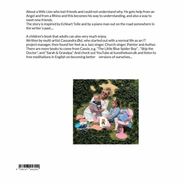 About a little Lion who lost friends and could not understand why. He gets help from an Angel and from a Rhino and this becomes his way to understanding, and also a way to meet new friends. The story is inspired by Echkart Tolle and by a piano man out on the road somewhere in the writer¿s past....