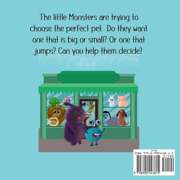 The Little Monsters are trying to choose the perfect pet. Do they want one that is big or small? Or one that jumps? There are so many pets to choose from. Can you help them decide? This entertaining story is told in playful rhymes and colorful illustrations. Some of the unconventional pet choices will bring a laugh to readers and listeners.
