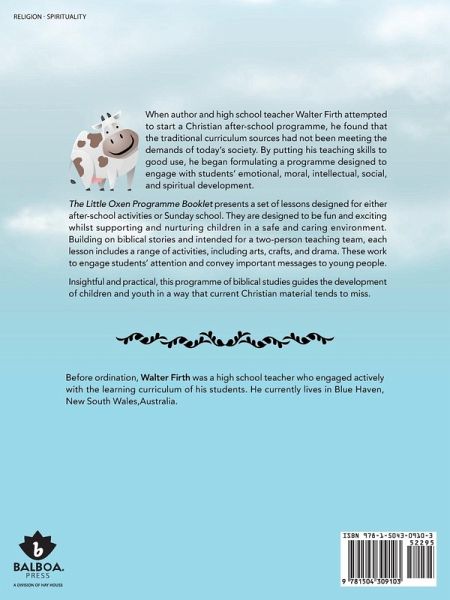 When author and high school teacher Walter Firth attempted to start a Christian after-school programme, he found that the traditional curriculum sources had not been meeting the demands of today's society. By putting his teaching skills to good use, he began formulating a programme designed to engage with students' emotional, moral, intellectual, social, and spiritual development. The Little Oxen Programme Booklet presents a set of lessons designed for either after-school activities or Sunday school. They are designed to be fun and exciting whilst supporting and nurturing children in a safe and caring environment. Building on biblical stories and intended for a two-person teaching team, each lesson includes a range of activities, including arts, crafts, and drama. These work to engage students' attention and convey important messages to young people. Insightful and practical, this programme of biblical studies guides the development of children and youth in a way that current Christian material tends to miss.