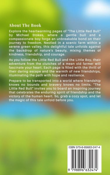 Explore the heartwarming pages of "The Little Red Bull" by Michael Stokes, where a gentle bull and a compassionate boy forge an unbreakable bond on their journey to freedom. Nestled in a scenic farm within a serene green valley, this delightful tale unfolds against the backdrop of nature's beauty, mixing themes of kindness, friendship, and courage. As you follow the Little Red Bull and the Little Boy, their adventure from the clutches of a mean old farmer will fascinate your heart. Each page is filled with the thrill of their daring escape and the warmth of new friendships, illuminating the path with hope and resilience. Prepare to be transported into a world where friendship knows no bounds and bravery knows no limits. "The Little Red Bull" invites you to board an inspiring journey that celebrates the enduring spirit of friendship and the victory of the human heart. So, grab a cozy spot, and let the magic of this tale unfold before you.