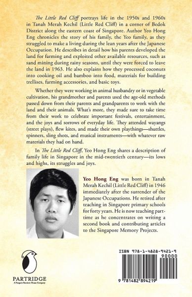 The Little Red Cliff portrays life in the 1950s and 1960s in Tanah Merah Kechil (Little Red Cliff) in a corner of Bedok District along the eastern coast of Singapore. Author Yeo Hong Eng chronicles the story of his family, the Yeo family, as they struggled to make a living during the lean years after the Japanese Occupation. He describes in detail how his parents developed the land for farming and exploited other available resources, such as sand mining during rainy seasons, until they were forced to leave the land in 1963. He also explains how they processed coconuts into cooking oil and bamboo into food, materials for building trellises, farming accessories, and basic toys. Whether they were working in animal husbandry or in vegetable cultivation, his grandmother and parents used the age-old methods passed down from their parents and grandparents to work with the land and their animals. What's more, they made sure to take time from their work to celebrate important festivals, entertainment, and the joys and sorrows of everyday life. They attended wayangs (street plays), flew kites, and made their own playthings-shuttles, spinners, sling shots, and musical instruments-with whatever raw materials they had on hand. In The Little Red Cliff, Yeo Hong Eng shares a description of family life in Singapore in the mid-twentieth century-its lows and highs, its struggles and joys.