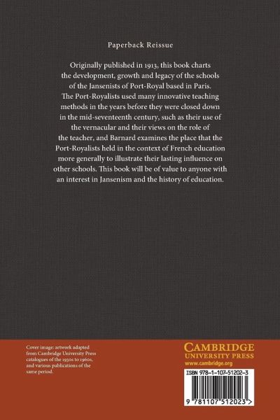 Originally published in 1913, this book charts the development, growth and legacy of the schools of the Jansenists of Port-Royal based in Paris. The Port-Royalists used many innovative teaching methods in the years before they were closed down in the mid-seventeenth century, such as their use of the vernacular and their views on the role of the teacher, and Barnard examines the place that the Port-Royalists held in the context of French education more generally to illustrate their lasting influence on other schools. This book will be of value to anyone with an interest in Jansenism and the history of education.