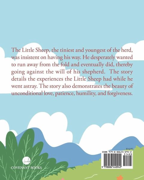 The Little Sheep, the tiniest and youngest of the herd, was insistent on having his way. He desperately wanted to run away from the fold and eventually did, thereby going against the will of his shepherd. The story details the experiences the Little Sheep had while he went astray. The story also demonstrates the beauty of unconditional love, patience, humility, and forgiveness.