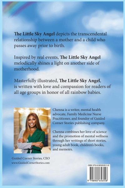 The Little Sky Angel is a wonderfully written illustrative story that depicts the transcendental relationship between a mother and a child who passes away prior to birth. Inspired by real events, The Little Sky Angel melodically shines a light on a different side of motherhood. Masterfully illustrated, The Little Sky Angel, is written with love and compassion for readers of all age groups in honor of all rainbow babies. For parents, children, and family members that have experienced a loss of a baby. Dedicated to baby Akindejoye (A-keen-dey-joy-yay)