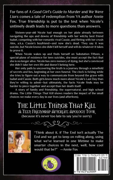 Kirkus Reviews' Best Books of 2025 "YES, must read!"She thought dying would be the end. Turns out, it's just the beginning. Sixteen-year-old Nicole Benson wakes up on a floating platform surrounded by dead kids... only she doesn't remember dying. Everyone insists she killed herself, but Nicole knows that's not true. Now trapped in Substation Fifteen-the special afterlife realm for teens who ended their own lives-she's got just thirty days to uncover the facts and piece together what happened. If she fails, her next stop could be really be the end. But the truth is a tangled mess of secrets, lies, and betrayals. If Nicole's not strong enough, the facts she finds might be harder to accept than death itself. For fans of Before I Fall, We Were Liars, and A Good Girl's Guide to Murder comes a haunting and heartfelt YA paranormal mystery about friendship, forgiveness, and the destructive lies we tell ourselves-even after death. SYNOPSIS:True friendship is put to the test when Nicole's untimely death leads to more questions than answers. Sixteen-year-old Nicole already had enough on her plate between distancing herself from her embarrassingly witchy bestie Isabel and competing with her don't-mess-with-me romantic rival Cassie, who happens to be dating Nicole's crush. Now Nicole is dead. This comes as a shock when she wakes up and finds herself on Substation Fifteen, an afterlife realm. They say it was suicide. Nicole has zero memory of dying, but she's convinced she didn't take her own life and doesn't belong there. Her only path to uncovering the truth is a fact-finding trip through a minefield of secrets and lies, beginning at her own funeral. But how can she communicate from beyond the grave with the two girls who know much more about Nicole's Last Day than they're willing to admit? Nicole better learn quickly because she has just thirty days to learn what really happened, otherwise she won't be moving on to her next destination. Ultimately, the facts Nicole finds may be harder to piece together and accept than death itself. A story of family, friendship, loss, and redemption, The Little Things That Kill exposes the impact of the small choices we make every day in our lives (and afterlives).