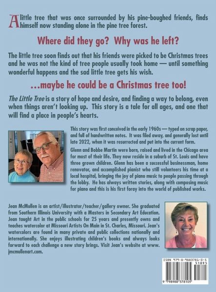 A little tree that was once surrounded by his pine-boughed friends, finds himself now standing alone in the pine tree forest. Where did they go? Why was he left? The little tree soon finds out that his friends were picked to be Christmas trees and he was not the kind of tree people usually took home - until something wonderful happens and the sad little tree gets his wish. Maybe he could be a Christmas tree too! The Little Tree is a story of hope and desire, and finding a way to belong, even when things aren't looking up. This story is a tale for all ages, and one that will find a place in people's hearts.