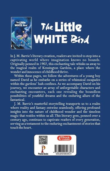 In J. M. Barrie's literary creation, readers are invited to step into a captivating world where imagination knows no bounds. Originally penned in 1902, this enchanting tale whisks us away to the magical realm of Kensington Gardens, a place where the wonder and innocence of childhood thrive. Within these pages, we follow the adventures of a young boy named David as he embarks on a series of whimsical escapades within the gardens' lush confines. As we accompany David on his journey, we encounter an array of unforgettable characters and enchanting encounters, each one revealing the boundless possibilities of youthful dreams and the enduring allure of the fantastical. J. M. Barrie's masterful storytelling transports us to a realm where reality and fantasy entwine seamlessly, offering profound insights into the nature of childhood wonder and the timeless magic that resides within us all. This literary gem, penned over a century ago, continues to captivate readers of every generation, serving as a testament to the enduring enchantment of stories that touch the heart.