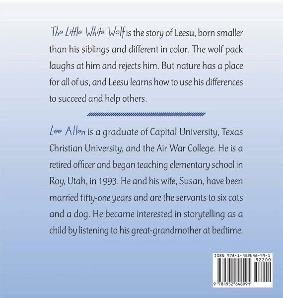 The Little White Wolf is the story of Leesu, born smaller than his siblings and different in color. The wolf pack laughs at him and rejects him. But nature has a place for all of us, and Leesu learns how to use his differences to succeed and help others.