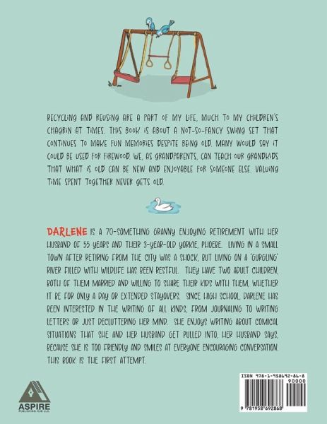 Recycling and reusing are a part of my life, much to my children's chagrin at times. This book is about a not-so-fancy swing set that continues to make fun memories despite being old. Many would say it could be used for firewood. We, as grandparents, can teach our grandkids that what is old can be new and enjoyable for someone else. Valuing time spent together never gets old. Darlene is a 70-something granny enjoying retirement with her husband of 55 years and their 3-year-old Yorkie, Phoebe. Living in a small town after retiring from the City was a shock, but living on a "gurgling" river filled with wildlife has been restful. They have two adult children, both of them married and willing to share their kids with them, whether it be for only a day or extended stayovers. Since high school, Darlene has been interested in the writing of all kinds, from journaling to writing letters or just decluttering her mind. She enjoys writing about comical situations that she and her husband get pulled into, her husband says, because she is too friendly and smiles at everyone encouraging conversation. This book is the first attempt.