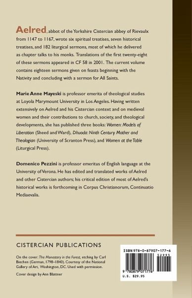 Aelred, abbot of the Yorkshire Cistercian abbey of Rievaulx from 1147 to 1167, wrote six spiritual treatises, seven historical treatises, and 182 liturgical sermons, most of which he delivered as chapter talks to his monks. Translations of the first twenty-eight of these sermons appeared in "The First Clairvaux Collection, Advent-All Saints," published in 2001. The current volume contains eighteen sermons given on feasts beginning with the Nativity and concluding with a sermon for All Saints.