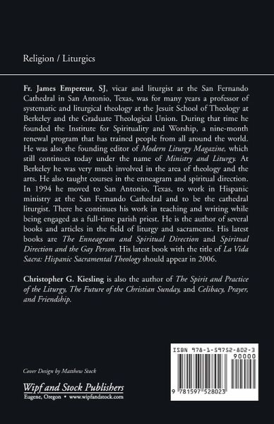 Fr. Jake Empereur, S.J., vicar and liturgist at the San Fernando Cathedral in San Antonio, Texas, was for many years a professor of systematic and liturgical theology at the Jesuit School of Theology at Berkeley and the Graduate Theological Union. During that time he founded the Institute for Spirituality and Worship, a nine-month renewal program which has trained people from all around the world. He was also the founding editor of Modern Liturgy Magazine that still continues today under the name of Ministry and Liturgy. At Berkeley he was very much involved in the area of theology and the arts. He also taught courses in the enneagram and spiritual direction. In 1994 he moved to San Antonio, Texas, to work in Hispanic ministry at the San Fernando Cathedral and to be the cathedral liturgist. There he continues his work in teaching and writing while being engaged as a full time parish priest. He is the author of several books and articles in the field of liturgy and sacraments. His latest books are The Enneagram and Spiritual Direction and Spiritual Direction and the Gay Person. His latest book with the title of La Vida Sacra: Hispanic Sacramental Theology should appear in 2006. Christopher G. Kiesling is also the author of _The Spirit and Practice of the Liturgy_, _The Future of the Christian Sunday_, and _Celibacy, Prayer, and Friendship_.