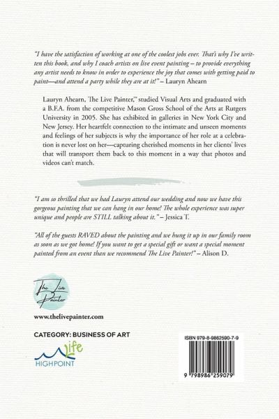 Art for Fun, Profit, and Memories "I have the satisfaction of working at one of the coolest jobs ever. That's why I've written this book, and why I coach artists on live event painting - to provide everything any artist needs to know in order to experience the joy that comes with getting paid to paint-and attend a party while they are at it!" - Lauryn Ahearn