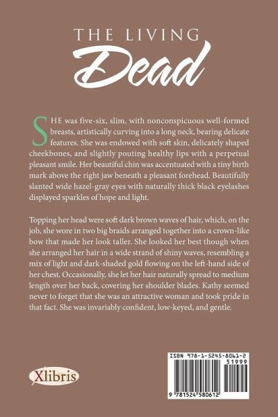 She was five-six, slim, with nonconspicuous well-formed breasts, artistically curving into a long neck, bearing delicate features. She was endowed with soft skin, delicately shaped cheekbones, and slightly pouting healthy lips with a perpetual pleasant smile. Her beautiful chin was accentuated with a tiny birth mark above the right jaw beneath a pleasant forehead. Beautifully slanted wide hazel-gray eyes with naturally thick black eyelashes displayed sparkles of hope and light. Topping her head were soft dark brown waves of hair, which, on the job, she wore in two big braids arranged together into a crown-like bow that made her look taller. She looked her best though when she arranged her hair in a wide strand of shiny waves, resembling a mix of light and dark-shaded gold flowing on the left-hand side of her chest. Occasionally, she let her hair naturally spread to medium length over her back, covering her shoulder blades. Kathy seemed never to forget that she was an attractive woman and took pride in that fact. She was invariably confident, low-keyed, and gentle.