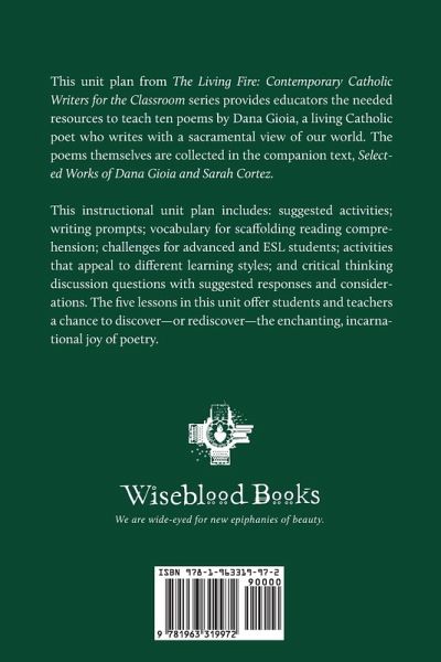 This unit plan from The Living Fire: Contemporary Catholic Writers for the Classroom series provides educators the needed resources to teach ten poems by Dana Gioia, a living Catholic poet who writes with a sacramental view of our world. The poems themselves are collected in the companion text, Selected Works of Dana Gioia and Sarah Cortez. This instructional unit plan includes: suggested activities; writing prompts; vocabulary for scaffolding reading comprehension; challenges for advanced and ESL students; activities that appeal to different learning styles; and critical thinking discussion questions with suggested responses and considerations. The five lessons in this unit offer students and teachers a chance to discover-or rediscover-the enchanting, incarnational joy of poetry.