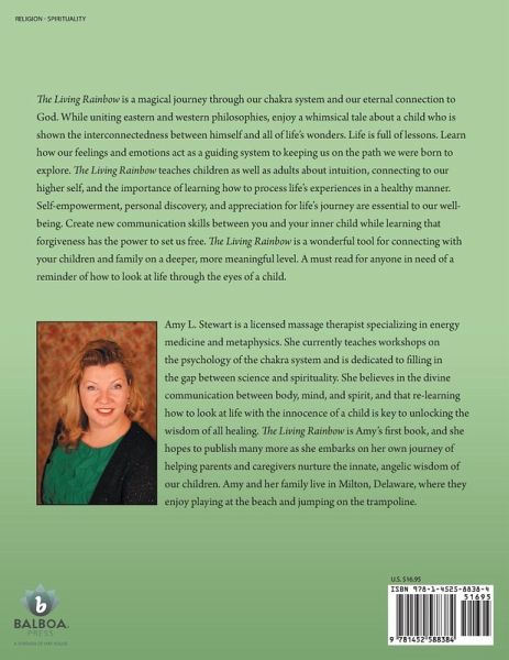 The Living Rainbow is a magical journey through our chakra system and our eternal connection to God. While uniting eastern and western philosophies, enjoy a whimsical tale about a child who is shown the interconnectedness between himself and all of life's wonders. Life is full of lessons. Learn how our feelings and emotions act as a guiding system to keeping us on the path we were born to explore. The Living Rainbow teaches children as well as adults about intuition, connecting to our higher self, and the importance of learning how to process life's experiences in a healthy manner. Self-empowerment, personal discovery, and appreciation for life's journey are essential to our well-being. Create new communication skills between you and your inner child while learning that forgiveness has the power to set us free. The Living Rainbow is a wonderful tool for connecting with your children and family on a deeper, more meaningful level. A must read for anyone in need of a reminder of how to look at life through the eyes of a child.