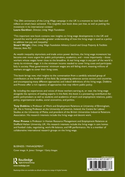 1. Introduction Part 1: The Living Wage in the UK: Sector studies 2. The Living Wage Foundation's 'Real Living Wage' Campaign 3. The Real Living Wage and 'The Good Employer' in UK Football Clubs 4. Outsourcing and the Living Wage: evidence from the UK 5. Employer experiences of the Living Wage in the higher education hospitality and construction sectors 6. What About Care Work and In-Work Poverty? The Case of Care Workers in the UK 7. Making the Living Wage work in SMEs - Evidence from accredited employers in the UK hospitality sector Part 2: The Living Wage in International Comparative Contexts 8. The living wage and the European Union 9. Wages and working conditions in outsourced services in Europe 10. Are collective bargaining models in the Nordic countries able to secure a living wage? Experiences from low wage industries 11. The Living Wage Fight for $15 and Low Wage Worker Campaigns in the U.S 12. The Living Wage Movement in Canada 13. The Belated Return of an Australian Living Wage: Reworking 'A Fair Go' for the 21st Century 14. Employer and Employee Perspectives on the Living Wage in New Zealand 15. Living Wage Initiatives in the Garment Sector: Insights from Southeast Asia 16. Conclusion
