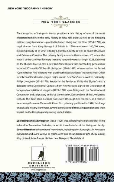 Edwin Brockholst Livingston (1852-1929) was a shipping insurance broker living in London. An amateur historian, he wrote three histories of the Livingston family. Edward Renehan is the author of many books, including John Burroughs: An American Naturalist and Dark Genius of Wall Street: The Misunderstood Life of Jay Gould, King of the Robber Barons. He lives near Newport, Rhode Island.