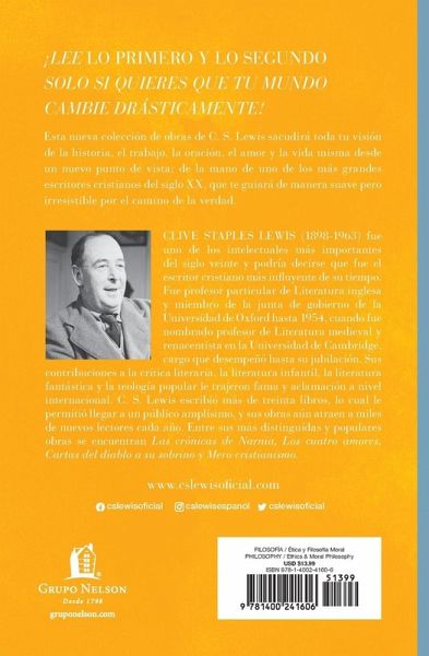 Esta brillante colecci¿¿n de las obras de C. S. Lewis sacudir¿¿ toda tu visi¿¿n de la historia, el trabajo, la oraci¿¿n, el amor y la vida misma desde un nuevo patr¿¿n; siendo uno de los escritores cristianos m¿¿s influyentes del siglo XX C. S Lewis conducir¿¿ tu mente en una suave pero irresistible traves¿¿a sobre de la verdad. Descubre esta vibrante recopilaci¿¿n de ensayos sobre la vida del ser humano y la apolog¿¿tica cristina en contra de las corrientes de teolog¿¿as modernistas. Un resultado de diversas publicaciones a lo largo del tiempo y en distintas obras del autor, esta lectura llevar¿¿ tu mundo a pensar en algunas de las cuestiones m¿¿s desafiantes para el individuo y la sociedad de forma fresca y cautivadora. First and Second Things This brilliant collection of the works of C. S. Lewis will shake your whole view of history, work, prayer, love, and life itself into a new pattern; as one of the most influential Christian writers of the 20th century, C. S Lewis will lead your mind on a gentle but compelling journey through the truth. Discover this vibrant collection of essays on the life of the human being and Christian apologetics against the currents of modernist theologies. A result of various publications over time and in different works by the author, this reading will lead your world to think about some of the most challenging questions for the individual and society in a fresh and captivating way.