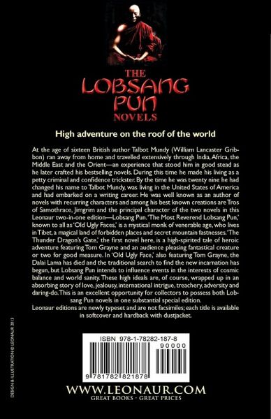 High adventure on the roof of the world At the age of sixteen British author Talbot Mundy (William Lancaster Gribbon) ran away from home and travelled extensively through India, Africa, the Middle East and the Orient-an experience that stood him in good stead as he later crafted his bestselling novels. During this time he made his living as a petty criminal and confidence trickster. By the time he was twenty nine he had changed his name to Talbot Mundy, was living in the United States of America and had embarked on a writing career. He was well known as an author of novels with recurring characters and among his best known creations are Tros of Samothrace, Jimgrim and the principal character of the two novels in this Leonaur two-in-one edition-Lobsang Pun. 'The Most Reverend Lobsang Pun,' known to all as 'Old Ugly Faces,' is a mystical monk of venerable age, who lives in Tibet, a magical land of forbidden places and secret mountain fastnesses. 'The Thunder Dragon's Gate,' the first novel here, is a high-spirited tale of heroic adventure featuring Tom Grayne and an audience pleasing fantastical creature or two for good measure. In 'Old Ugly Face,' also featuring Tom Grayne, the Dalai Lama has died and the traditional search to find the new incarnation has begun, but Lobsang Pun intends to influence events in the interests of cosmic balance and world sanity. These high ideals are, of course, wrapped up in an absorbing story of love, jealousy, international intrigue, treachery, adversity and daring-do. This is an excellent opportunity for collectors to possess both Lobsang Pun novels in one substantial special edition. Leonaur editions are newly typeset and are not facsimiles; each title is available in softcover and hardback with dustjacket.