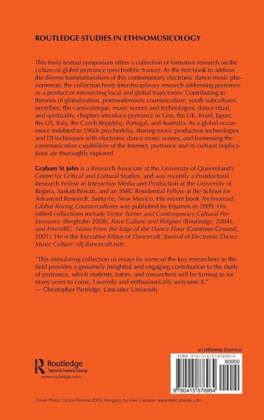 This lively textual symposium offers a collection of formative research on the culture of global psytrance (psychedelic trance). As the first book to address the diverse transnationalism of this contemporary electronic dance music phenomenon, the collection hosts interdisciplinary research addressing psytrance as a product of intersecting local and global trajectories. Contributing to theories of globalization, postmodernism, counterculture, youth subcultures, neotribes, the carnivalesque, music scenes and technologies, dance ritual and spirituality, chapters introduce psytrance in Goa, the UK, Israel, Japan, the US, Italy, Czech Republic, Portugal and Australia. As a global occurrence indebted to 1960s psychedelia, sharing music production technologies and DJ techniques with electronic dance music scenes, and harnessing the communication capabilities of the Internet, psytrance and its cultural implications are thoroughly discussed in this first scholarly volume of its kind.