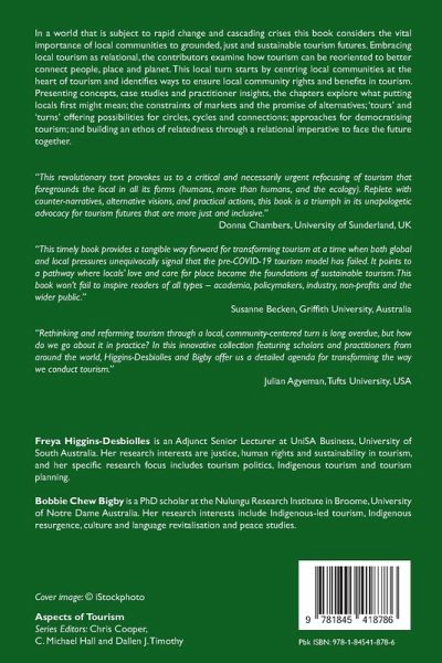 This book considers the vital importance of local communities to just and sustainable tourism futures. The contributors examine how tourism can be reoriented to better connect people, place and planet. This local turn starts by centring local communities at the heart of tourism and identifies ways to ensure local community rights and benefits.