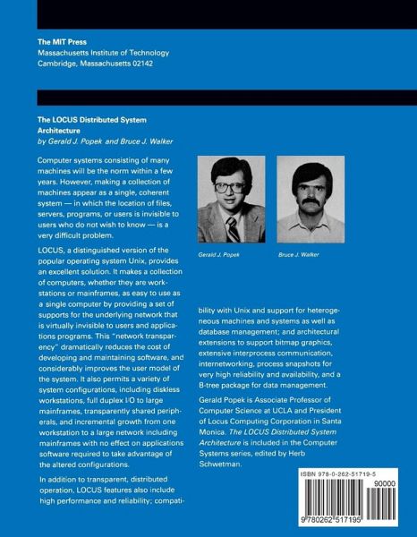 LOCUS, a distributed version of the popular operating system Unix, provides an excellent solution. It makes a collection of computers, whether they are workstations or mainframes, as easy to use as a single computer by providing a set of supports for the underlying network that is virtually invisible to users and - applications programs. Computer systems consisting of many machines will be the norm within a few years. However, making a collection of machines appear as a single, coherent system - in which the location of files, servers, programs, or users is invisible to users who do not wish to know - is a very difficult problem. LOCUS, a distributed version of the popular operating system Unix, provides an excellent solution. It makes a collection of computers, whether they are workstations or mainframes, as easy to use as a single computer by providing a set of supports for the underlying network that is virtually invisible to users and - applications programs. This "network transparency" dramatically reduces the cost of developing and maintaining software, and considerably improves the user model of the system. It also permits a variety of system configurations, including diskless workstations, full duplex I/O to large mainframes, transparently shared peripherals, and incremental growth from one workstation to a large network including mainframes with no effect on applications software required to take advantage of the altered configurations. In addition to transparent, distributed operation, LOCUS features also include high performance and reliability; full Unix compatibility, support for heterogeneous machines and systems, automatic management of replicated file storage; and architectural extensions to support extensive interprocess communication and internetworking. Contents The LOCUS Architecture • Distributed Operation and Transparency • The LOCUS Distributed Filesystem • Remote Tasking • Filesystem Recovery • Dynamic Reconfiguration of LOCUS • Heterogeneity • System Management • Appendixes: LOCUS Version Vector Mechnism • LOCUS Internal Network Messages The LOCUS Distributed System Architecture is included in the Computer Systems series, edited by Herb Schwetman.
