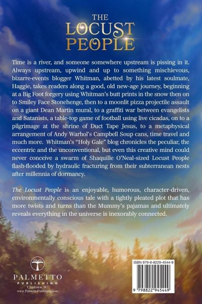 "Time is a river, and someone somewhere is pissing in it." Dive into the wild, weird, and wonderful world of bizarre events blogger Whitman as he discovers a dormant group of beings set on curing the world from harm. Whitman's "Holy Gale" blog chronicles the peculiar, the eccentric, and the unconventional - but even he wasn't expected to run into a group of Shaquille O'Neal-sized Locust People rising after millennia from their subterranean nests. Whitman is a struggling writer who resides on Mullet Top, a knoll overlooking T-town and the center of hydraulic fracturing for Marcellus shale. There, the millions of gallons of chemical-laced water pumped into the hills stir the Locust People, causing the giant winged species to inflict mayhem, death, and destruction upon the fracking operations and T-town. Suddenly Whitman finds himself and his latest soulmate, Haggie, within a reality not unlike the truth-cheated scenarios in his "Holy Gale" blog. Their new age journey begins at a Big Foot forgery with his ass prints in the snow; wanders to Smiley Face Stonehenge, a moonlit pizza projectile assault upon a giant Dean Martin mural; and continues through a pilgrimage to the shrine of Duct Tape Jesus, a metaphysical arrangement of Andy Warhol's Campbell's Soup cans. Along the way, they encounter yoga contests, a graffiti war between evangelists and Satanists, a table- top game of football using live locusts, and an induction into the Alien Anal Probe Hall of Fame. The Locust People is an enjoyable, well-plotted novel for adults and any environmentally-conscious reader. Its cast of colorful characters drives the narrative, which has more twists and turns than the Kama Sutra and ultimately reveals everything in the universe is concertedly connected.