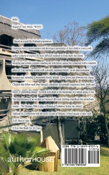 This is the sequel of Into Africa. It is based on firsthand actual life experiences. It expresses how a parent nurtures and develops a personality of their child in a story, with author's inserts to express the more difficult situation to bring them into clarity. The incidents and actions continue standing out with heroic justice but are connected with a complete series of a narration of true events of a recently separated family on an intercontinental business trip, including a pleasurable family holiday. Love grows pure between two young children, which follow each other through continents. They accidentally experience birth, death, and horror of impending danger. It is layered with death at the beginning of a nation going to war. It tells the remembrance of an incident at Victoria Falls' rock-climbing expedition that turned into murder and the Elephant Hills Lodge in Rhodesia/Zimbabwe before the rebuild. An addition is a connection with the secret society of the Masons and a brief insight to their craft. It also tells of the SAS, men of valor. It is a five-star book for all ages. The Lodge of Valour: http://www.amazon.co.uk/Tom-West/e/B00YJWD3FE.