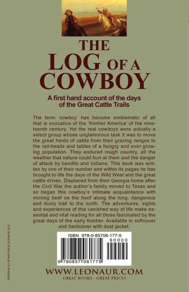 A first hand account of the days of the Great Cattle Trails The term 'cowboy' has become emblematic of all that is evocative of the 'frontier America' of the nineteenth century. Yet the real cowboys were actually a select group whose unglamorous task it was to move the great herds of cattle from their grazing ranges to the rail-heads and tables of a hungry and ever growing population. They endured rough country, all the weather that nature could hurl at them and the danger of attack by bandits and Indians. This book was written by one of their number and within its pages he has brought to life the days of the Wild West and the great cattle drives. Displaced from their Georgia home after the Civil War the author's family moved to Texas and so began this cowboy's intimate acquaintance with moving beef on the hoof along the long, dangerous and dusty trail to the north. The adventures, sights and experiences of this vanished way of life make essential and vital reading for all those fascinated by the great days of the early frontier. Available in softcover and hardcover with dust jacket.