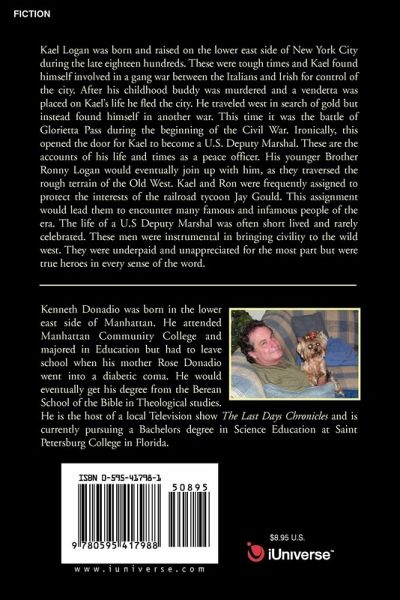 Kael Logan was born and raised on the lower east side of New York City during the late eighteen hundreds. These were tough times and Kael found himself involved in a gang war between the Italians and Irish for control of the city. After his childhood buddy was murdered and a vendetta was placed on Kael's life he fled the city. He traveled west in search of gold but instead found himself in another war. This time it was the battle of Glorietta Pass during the beginning of the Civil War. Ironically, this opened the door for Kael to become a U.S. Deputy Marshal. These are the accounts of his life and times as a peace officer. His younger Brother Ronny Logan would eventually join up with him, as they traversed the rough terrain of the Old West. Kael and Ron were frequently assigned to protect the interests of the railroad tycoon Jay Gould. This assignment would lead them to encounter many famous and infamous people of the era. The life of a U.S Deputy Marshal was often short lived and rarely celebrated. These men were instrumental in bringing civility to the wild west. They were underpaid and unappreciated for the most part but were true heroes in every sense of the word.