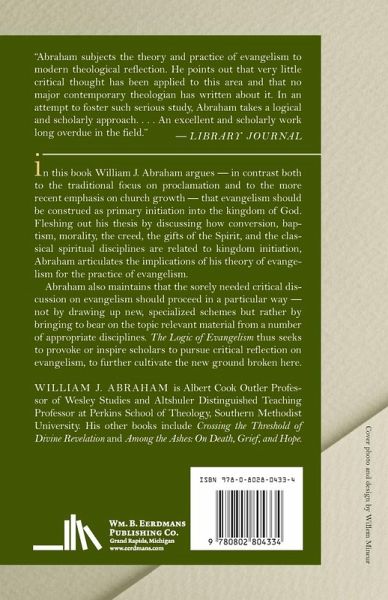In this book William J. Abraham attempts to address the dearth of modern theology on the topic of evangelism. In contrast both to the traditional focus on proclamation and to the more recent emphasis on church growth, Abraham argues that evangelism should be construed as primary initiation into the kingdom of God. Fleshing out his thesis by discussing how conversion, baptism, morality, the creed, the gifts of the Holy Spirit, and the classical spiritual disciplines are related to kingdom initiation, Abraham seeks to articulate the implications of his theory of evangelism for the practice of evangelism. Besides holding forth a specific norm regarding how evangelism should be understood, Abraham also maintains that the sorely needed critical discussion about evangelism should proceed in a particular way--not by drawing up new, specialized schemes but rather by bringing to bear on the topic relevant material from a number of appropriate disciplines. The book thus seeks to provoke or inspire other scholars to pursue critical reflection on evangelism, to further develop the new ground broken here.