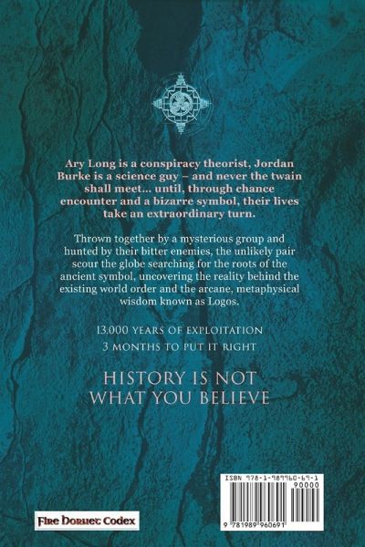 Ary Long is a conspiracy theorist, Jordan Burke is a science guy - and never the twain shall meet... until, through chance encounter and a bizarre symbol, their lives take an extraordinary turn. Thrown together by a mysterious group and hunted by their bitter enemies, the unlikely pair scour the globe searching for the roots of the ancient symbol, uncovering the reality behind the existing world order and the arcane, metaphysical wisdom known as Logos. 13,000 years of exploitation 3 months to put it right HISTORY IS NOT WHAT YOU BELIEVE