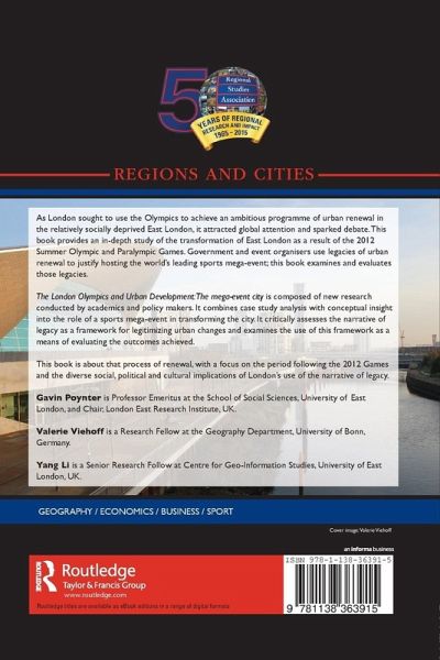 As London sought to use the Olympics to achieve an ambitious programme of urban renewal in the relatively socially deprived East London it attracted global attention and sparked debate. This book provides an in-depth study of the transformation of East London as a result of the 2012 Summer Olympic and Paralympic Games. Government and event organisers use legacies of urban renewal to justify hosting the world's leading sports mega-event, this book examines and evaluates those legacies.
