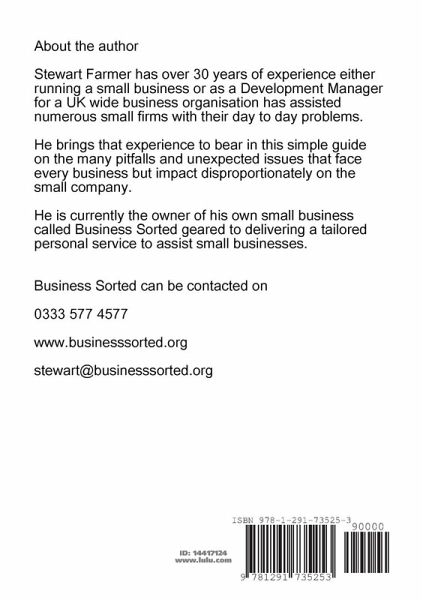 Now with practical real life examples .This a guide for anyone either starting or running a small business. It deals with the many issues that confront a small business from day to day. Not only covering the normal business issues but also the myriad of problems that can face you unexpectedly