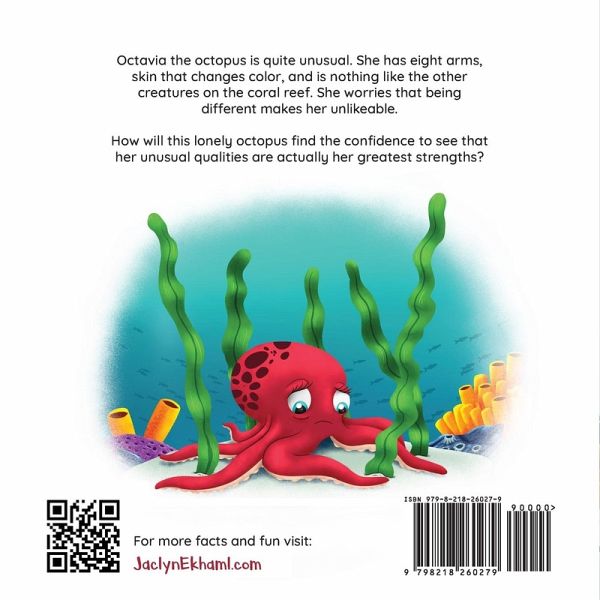 The Lonely Octopus is the story of Octavia, an exceptional octopus who thinks no one will like her because of her unusual traits. As she interacts with various sea creatures, Octavia discovers her unique abilities are sources of admiration and connection. This book portrays Octavia's transformation from isolation to confidence, illustrating the importance of embracing individuality and recognizing the extraordinary in oneself and others.