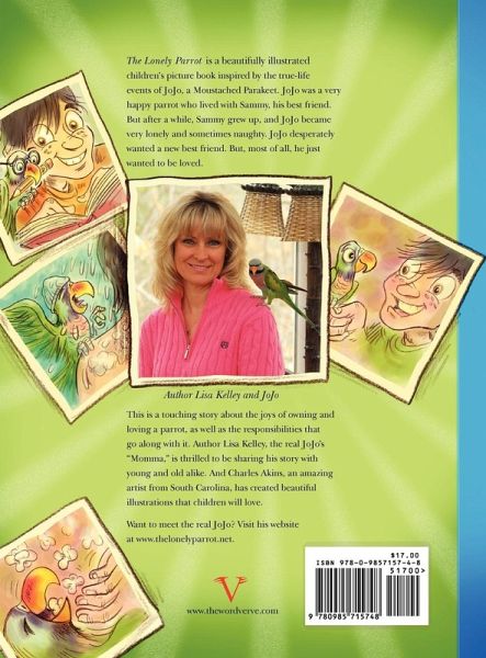 Winner of the prestigious IPPY award, "The Lonely Parrot" is a beautifully illustrated children's picture book inspired by the true-life events of JoJo, a Moustached Parakeet. JoJo was a very happy parrot who lived with Sammy, his best friend. But after a while, Sammy grew up, and JoJo became very lonely and sometimes naughty. JoJo desperately wanted a new best friend. But, most of all, he just wanted to be loved. This is a touching story about the joys of owning and loving a parrot, as well as the responsibilities that go along with it. Author Lisa Kelley, the real JoJo's "Momma," is thrilled to be sharing his story with young and old alike. And Charles Akins, an amazing artist from South Carolina, has created beautiful illustrations that children will love. Want to meet the real JoJo? Visit his website at www.thelonelyparrot.net or "Like" him on Facebook at www.facebook.com/TheLonelyParrot.