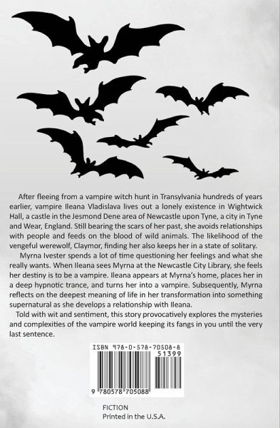 In 1578, Romanians and Hungarians everywhere united to rid their Transylvania home of its vampire infestation. Ileana Vladislava transformed herself into a bat to escape, safely eluding Claymor Elgany, a vengeful vampire hunter and werewolf. Hundreds of years later, Ileana is a lonely vampire residing within the walls of Wightwick Hall castle in Newcastle upon Tyne. The forever thirty-one-year-old vampire has managed to keep her identity a secret ... that is until a nosy Lorraine Krag moves into her Jesmond Dene neighborhood and starts prying into her life. As fate would have it, Ileana encounters the young, beautiful, and lonely Myrna Ivester. She transforms Myrna into a vampire, changing both their destinies, which will lead to the reappearance of Claymor - who stands in their way.