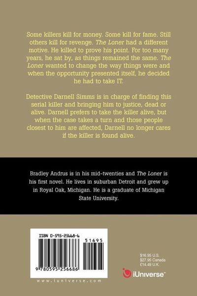 Some killers kill for money. Some kill for fame. Still others kill for revenge. The Loner had a different motive. He killed to prove his point. For too many years, he sat by, as things remained the same. The Loner wanted to change the way things were and when the opportunity presented itself, he decided he had to take IT.