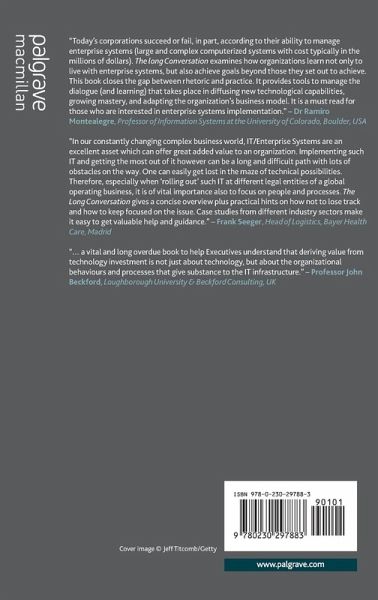 'In our constantly changing complex business world, IT/Enterprise Systems are an excellent asset which can offer great added value to an organization. Implementing such IT and getting the most out of it however can be a long and difficult path with lots of obstacles on the way. One can easily get lost in the maze of technical possibilities. Therefore, especially when 'rolling out' such IT at different legal entities of a global operating business, it is of vital importance also to focus on people and processes. The Long Conversation gives a concise overview plus practical hints on how not to lose track and how to keep focused on the issue. Case studies from different industry sectors make it easy to get valuable help and guidance.' Frank Seeger, Head of Logistics, Bayer Health Care, Madrid