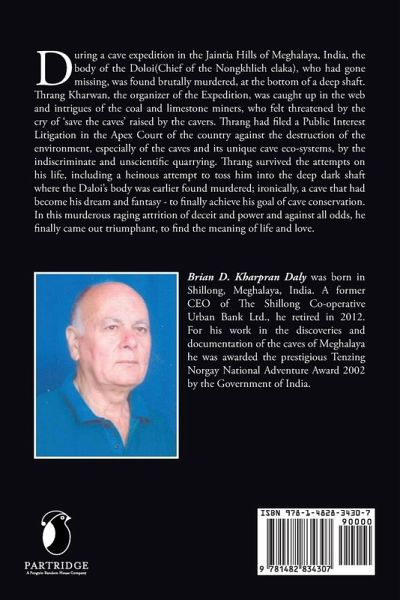 During a cave expedition in the Jaintia Hills of Meghalaya, India, the body of the Doloi(Chief of the Nongkhlieh elaka), who had gone missing, was found brutally murdered, at the bottom of a deep shaft. Thrang Kharwan, the organizer of the Expedition, was caught up in the web and intrigues of the coal and limestone miners, who felt threatened by the cry of 'save the caves' raised by the cavers. Thrang had filed a Public Interest Litigation in the Apex Court of the country against the destruction of the environment, especially of the caves and its unique cave eco-systems, by the indiscriminate and unscientific quarrying. Thrang survived the attempts on his life, including a heinous attempt to toss him into the deep dark shaft where the Daloi's body was earlier found murdered; ironically, a cave that had become his dream and fantasy - to finally achieve his goal of cave conservation. In this murderous raging attrition of deceit and power and against all odds, he finally came out triumphant, to find the meaning of life and love.