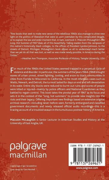 "Few books that seek to make new sense of the rebellious 1960s also manage to shine new light on the politics of liberalism that were so soon overtaken by this complicated decade, or to explain the law and order moment that, in turn, overtook it. Malcolm McLaughlin's 'The Long Hot Summer of 1967' does all of this, beautifully. Taking readers from the campuses of this nation's historically black colleges, to the offices of President Lyndon Johnson, to the streets of Detroit, Michigan, McLaughlin's book allows us all to understand much better than we yet do all that was lost, as well as was made newly possible, in America during the Sixties." - Heather Ann Thompson, Associate Professor of History, Temple University, US