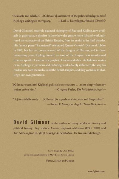 "Readable and reliable . . . [Gilmour's] assessment of the political background of Kipling's writings is exemplary." -Earl L. Dachslager, Houston Chronicle David Gilmour's superbly nuanced biography of Rudyard Kipling, now available in paperback, is the first to show how the great writer's life and work mirrored the trajectory of the British Empire, from its zenith to its final decades. His great poem "Recessional" celebrated Queen Victoria's Diamond Jubilee in 1897 and his last poems warned of the dangers of Nazism, while Kipling himself, an icon of the empire, was transformed from an apostle of success to a prophet of national decline. As Gilmour makes clear, Kipling's mysterious and enduring works deeply influenced the way his readers saw both themselves and the British Empire, and they continue to challenge our own generation.