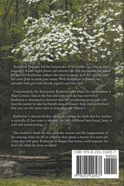 Katherine Peterson left her hometown of Kerryville, Ga., almost ten years ago. A late-night phone call informs her that her mother has asked for her, and Katherine realizes she must reconcile with her mother and her sister Julie to settle past issues. With Katherine is Allison, an adorable little girl with blonde pigtails and blue eyes. Unfortunately, the first person Katherine sees when she arrives home is Alan Connor. Alan is the first and only man she has ever loved. Katherine is dismayed to discover that his smoldering good looks still have the power to take her breath away. It doesn't help that his brilliant blue eyes are the same color as nine-year-old Allison's. Katherine is thrown further off balance when she finds that her mother is critically ill, her sister is missing, and her childhood best friend, Janie, is cold and unwelcoming. Her mother's death the day after she returns and the reappearance of her missing sister set off an eruption that opens a twenty-five-year-old crime that will place Katherine in danger, but worse, could separate her from the child she loves so dearly.