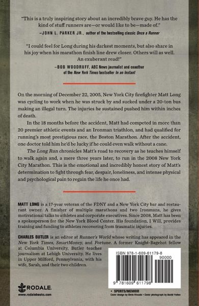A New York City firefighter's emotional and inspiring memoir of learning to run again after a debilitating accident, based on the wildly popular March 2009 piece in Runner's World. On the morning of December 22, 2005, Matt Long was cycling to work in the early morning when he was struck by and sucked under a 20-ton bus making an illegal turn. The injuries he sustained pushed him within inches of his life. Miraculously, more than 40 operations and months later, Matt was able to start his recovery. In spite of the severity of his injuries, Matt found the psychological consequences of the accident nearly as hard to process. He would no longer be able to compete at the highest level. In the 18 months before the accident, he had competed in more than 20 events including several triathlons and marathons and had qualified for running's most prestigious race, the Boston Marathon. After the accident, his doctor told him he'd be lucky if he could even walk without a cane. The Long Run is an emotional and incredibly honest story about Matt's determination to fight through fear, despair, loneliness, and intense physical and psychological pain to regain the life he once had. The book chronicles Matt's road to recovery as he teaches himself to walk again and, a mere three years later, to run in the 2008 New York City Marathon—a gimpy seven-and-a-half hour journey through the five boroughs. "Running saved my life," Matt says, and his embrace of the running community and insistence on competing in the marathon has inspired many, turning him into a symbol of hope and recovery for untold numbers of others.