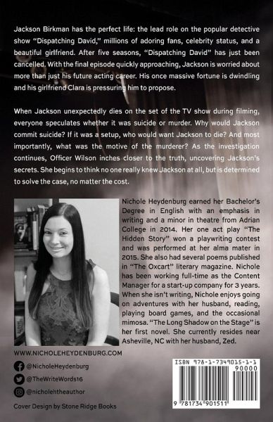 Jackson Birkman has a perfect life: the lead role on the popular detective show Dispatching David, millions of adoring fans, celebrity status, and a beautiful girlfriend. After five seasons, Dispatching David has been canceled. With the final episode quickly approaching, Jackson is worried about more than just his future acting career. His once-massive fortune is dwindling and his girlfriend Clara is pressuring him to propose. When Jackson unexpectedly dies on the set of the TV show during filming, everyone speculates whether it was suicide or murder. Why would Jackson commit suicide? If it was a setup, who would want Jackson to die? And most importantly, what was the motive of the murderer? As the investigation continues, Officer Wilson inches closer to the truth, uncovering Jackson's secrets. She begins to think no one knew Jackson at all but is determined to solve the case, no matter the cost.