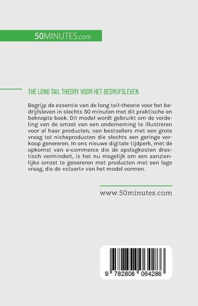 Begrijp de essentie van de long tail-theorie voor het bedrijfsleven in slechts 50 minuten met dit praktische en beknopte boek. Dit model wordt gebruikt om de verdeling van de omzet van een onderneming te illustreren voor al haar producten, van bestsellers met een grote vraag tot nicheproducten die slechts een geringe verkoop genereren. In ons nieuwe digitale tijdperk, met de opkomst van e-commerce die de opslagkosten drastisch vermindert, is het nu mogelijk om een aanzienlijke omzet te genereren met producten met een lage vraag, die de "staart" van het model vormen. Dit boek biedt u een handige inleiding tot de toepassingen van de long tail-theorie bij de ontwikkeling van commerciële strategieën en marketingstrategieën. Het bevat ook een gedetailleerde case study, een discussie over de tekortkomingen van de theorie en een inleiding tot verwante modellen, zoals het Pareto-principe, het ABC-model en de blockbuster-strategie. Over de lange staart theorie : De long tail theorie werd voor het eerst toegepast op het domein van het bedrijfsleven door de schrijver en ondernemer Chris Anderson in 2004, op basis van een analyse van populaire e-commerce sites, waaronder Amazon, eBay en Netflix. De bewering dat de winstgevendheid niet uitsluitend afhangt van bestsellers daagde vele bestaande bedrijfsstrategieën en economische modellen uit, maar er is niettemin geen gebrek aan bewijs om Andersons argument te ondersteunen. In dit boek ontdekt u hoe de long tail-theorie u ten goede kan komen, identificeert u de producten die de 'kop' en 'staart' van uw productportefeuille vormen en gebruikt u uw bevindingen om een winstgevende commerciële strategie te ontwikkelen. Een duidelijke uitleg van de voordelen en mogelijke nadelen van de methode, een bespreking van een praktische casus en een inleiding tot verwante modellen geven u de instrumenten die u nodig hebt om uw aanpak op uw situatie af te stemmen.