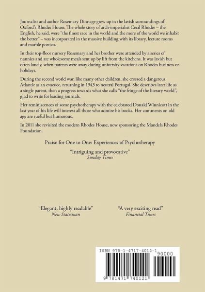 Journalist and author Rosemary Dinnage grew up in the lavish surroundings of Oxford's Rhodes House. The whole of arch-imperialist Cecil Rhodes - the English, he said, were "the finest race in the world and the more of the world they inhabit the better" - was incorporated in the massive building with its library, lecture rooms and marble portico. In their top-floor nursery Rosemary and her brother were attended by a series of nannies and ate wholesome meals sent up the lift from the kitchen. It was lavish but often lonely, when parents were away during vacations on Rhodes business or holidays. During the second world war, like many other children, she crossed a dangerous Atlantic as an evacuee, returning in 1943 to neutral Portugal. She describes later life as a single parent, then a progress towards what she call "the fringe of the literary world", glad to write for leading journalists.